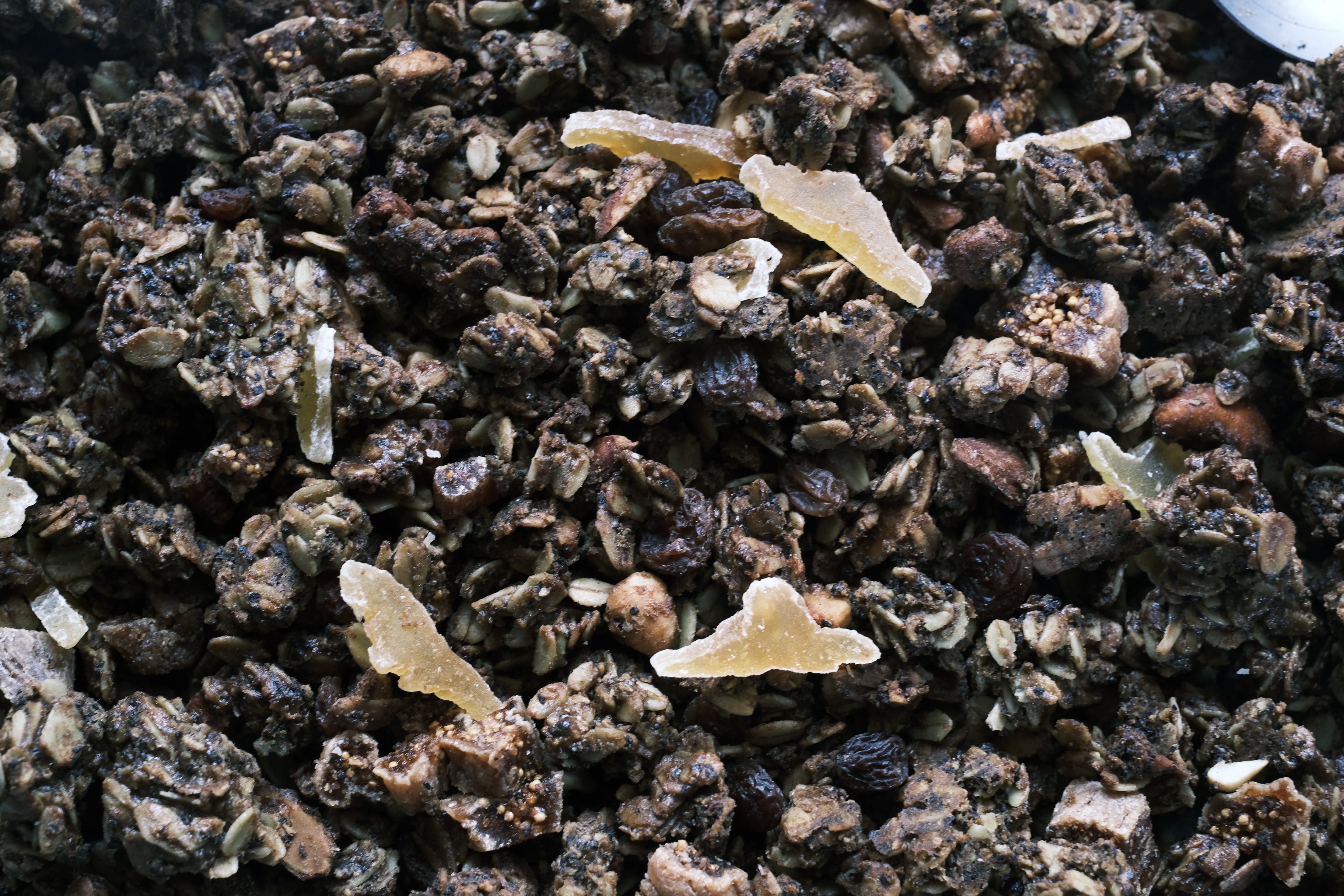 有機オートミール・国産きび砂糖・有機ココナツミルク・国産こめ油・ミックスナッツ(アーモンド・くるみ・カシューナッツ・マカデミアナッツ・ピーカンナッツ)ココナツチップス・北海道産小麦粉・北海道産全粒粉・有機ドライクランベリー・有機レーズン・コーヒー・天然塩